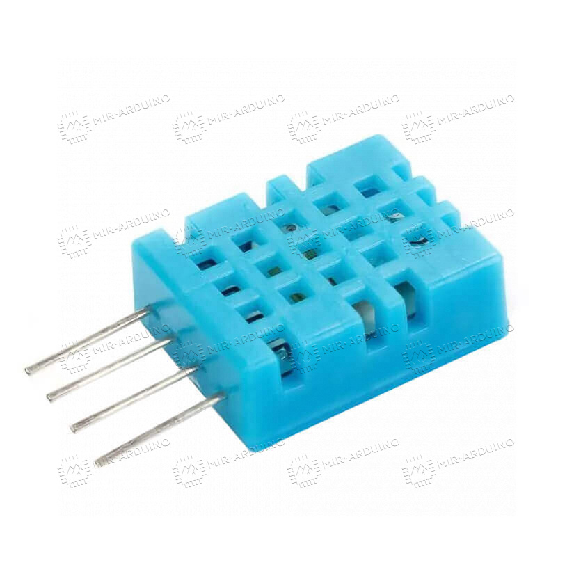Датчик влажности и температуры DHT11 используется для реализации проектов на базе Ардуино. Выдает калиброванный сигнал, измеряет значения влажности в диапазоне 20-80% с погрешностью до 5% и температуру в пределах 0-50°С с точностью до 2°С. Оснащен тремя выходами: напряжение питания от 3 до 5 В, земля и цифровой выход контроллера. Применяется преимущественно для обучения из-за невысокой точности измеряемых показателей.